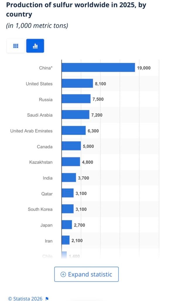 2. The ban is a direct consequence of the Iran war: the closure of the Strait of Hormuz has cut off sulfur shipments from the Middle East, which China depends on for over half its sulfur raw material needs.