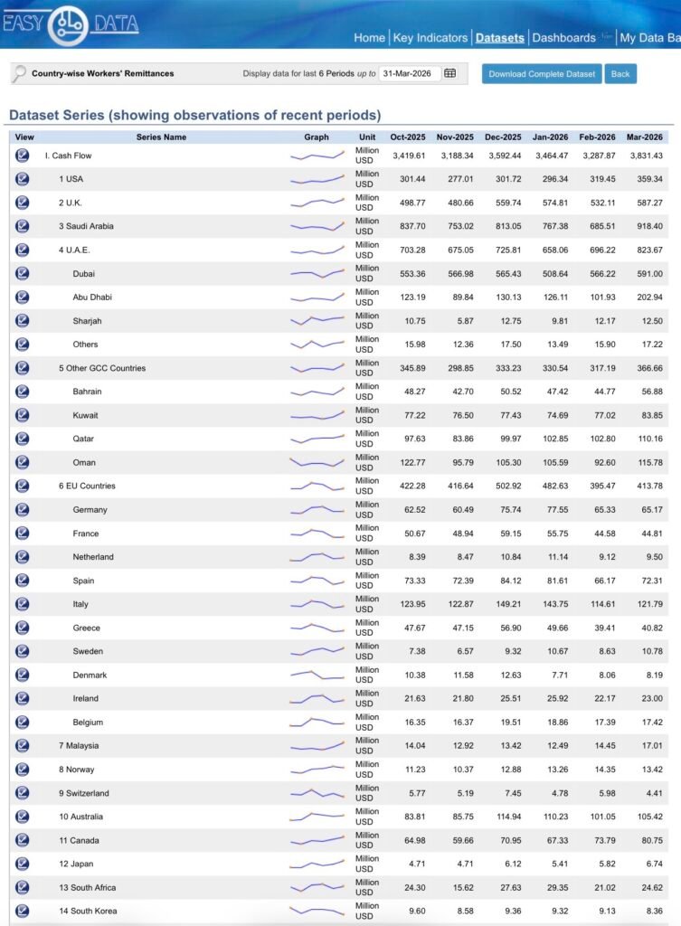 • March 2026 remittances reached $3.83 billion, a 17% month-on-month rise, lifting 9MFY26 totals to $30.32 billion (up 8% YoY).