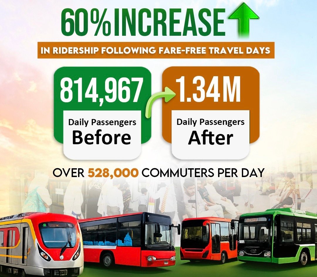 1. Ridership boom: Fare-free travel days triggered a 60% jump in Punjab’s public transport usage, with over 528,000 extra daily passengers straining the system to full capacity.